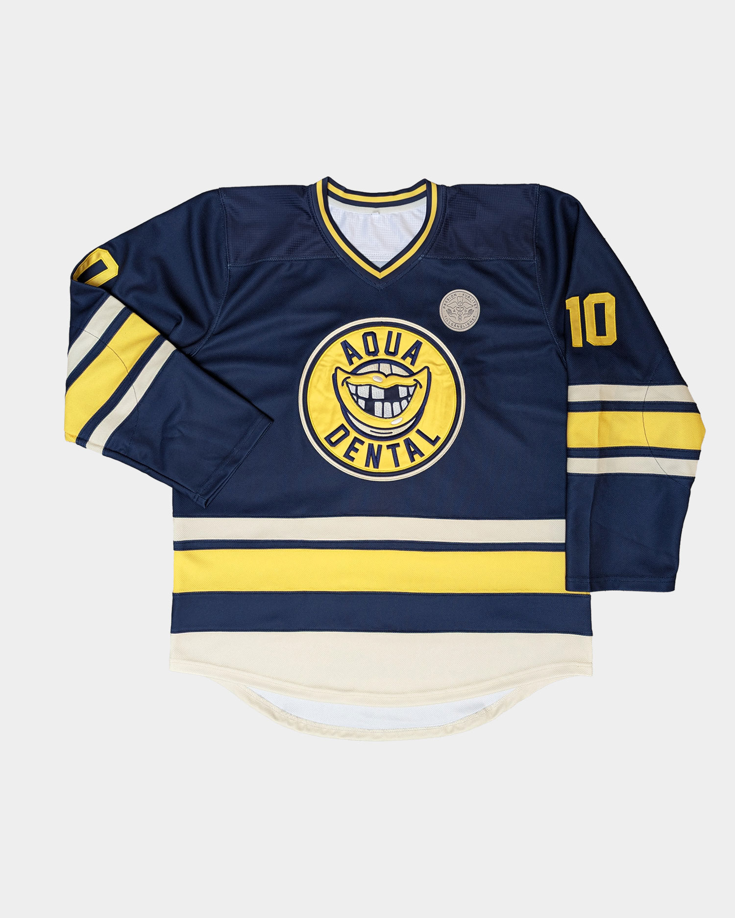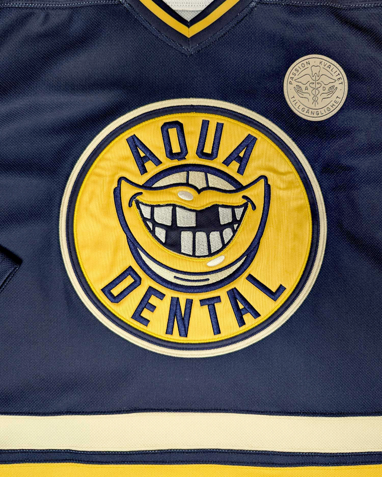 Hockey and football jerseys – design, development and production for Aqua Dental.